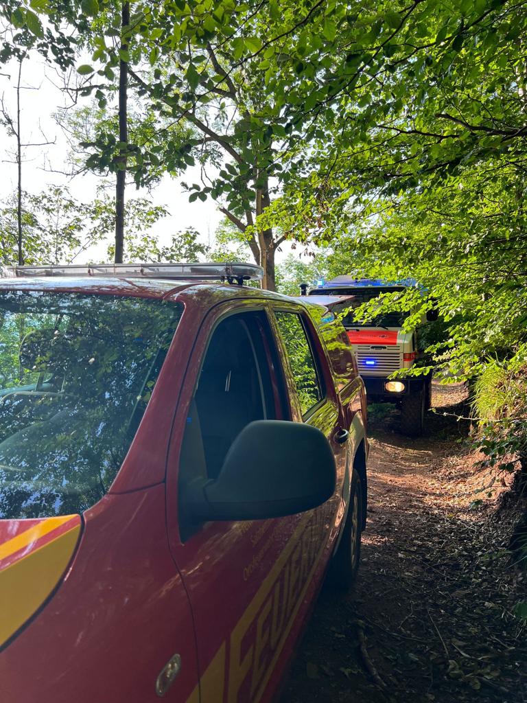 Unsere Aufgabe war es Personal und Equipment über die schmalen Waldwege zur Absturzstelle zu transportieren.