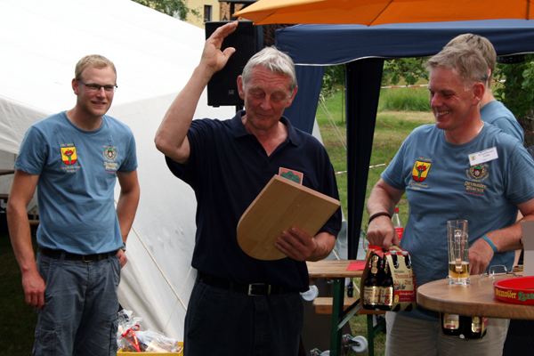 Am Ende herrschte Punktgleichheit, musste eine Schätzfrage her, um den Sieger zu ermitteln. Wie viele Einwohner hat Kreipke? „38“, riefen nach kurzer Beratung die einen, „37“ die anderen. Es sind 31. Den Einwand „Ich habe gegoogled. Da stand 41“ ließ Cheforganisator Uwe Hölscher natürlich nicht gelten und befand unnachgiebig: „Hier gilt nicht Google, sondern die Zahl auf diesem karierten Zettel.“ Damit gewann das Team „Erst mal ein Bier“ (Vikilu Hameln) das „Spiel ohne Grenzen“, zu dem die Dorfgemeinschaft Kreipke eingeladen hatte. Platz zwei ging an die „Alkonauten“ (FFW Halle). Ingesamt zehn, überwiegend Feuerwehr-Teams absolvierten bei hochsommerlicher Witterung sieben Stationen. Auch wenn die selbst gewählten Fantasienamen mancher Teams möglicherweise anderes vermuten lassen: Dem Augenschein nach hielt sich der Alkoholkonsum während der Spiele in durchaus tolerierbarem Rahmen.